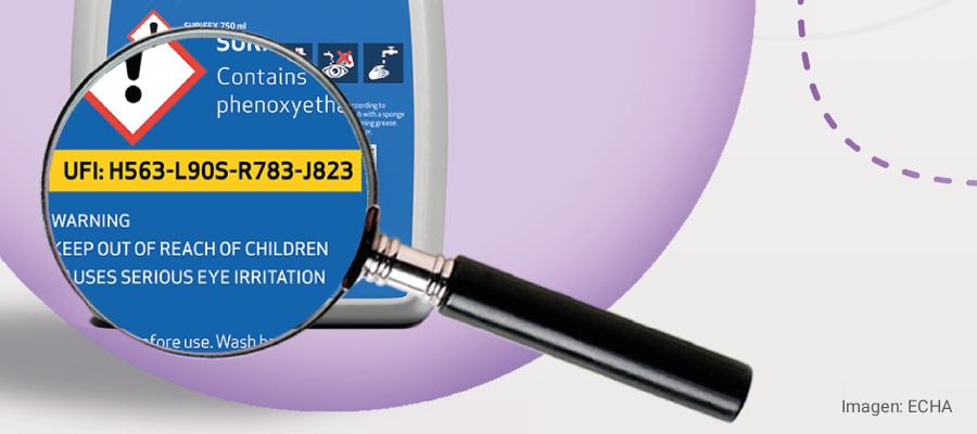 - No confíes ciegamente en que el producto es "seguro" solo porque no tiene etiquetas de peligro llamativas. Si el producto es peligroso, como lo son muchos productos biocidas, verifica siempre en la Sección 1.1 de la Ficha de Datos de Seguridad (FDS) que aparezca el código UFI. Si no está, exige la documentación a tu proveedor.