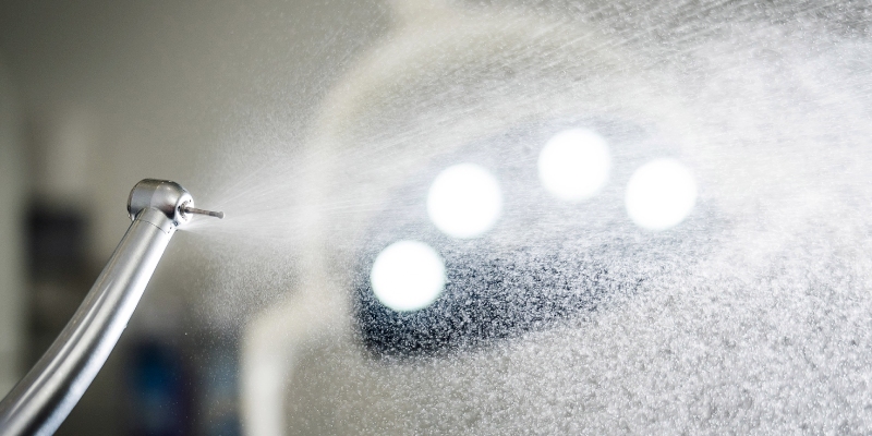 El uso de los ultrasonidos, turbinas y jeringas aire/agua produce partículas que pueden permanecer suspendidas y viajar entre 1,5 y 2 m desde la boca del paciente.